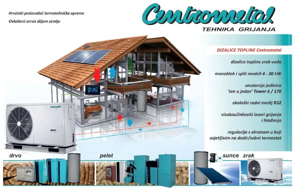 Centrometal d.o.o. je renomirani proizvođač kotlova na biomasu, a kako bi svojim kupcima ponudio više, u svoju je ponudu uvrstio i dizalice topline zrak-voda. U ponudi su dizalice topline split izvedbe 6-16 kW, monoblok izvedbe 5-30 kW i Tower „sve u jedan“ unutarnje jedinice (6-16 kW) s ugrađenim spremnikom PTV-a volumena 170 litara. Kompaktne dimenzije dizalica topline, osobito Tower unutarnjih jedinica (60×60 cm), značajno smanjuju potrebnu veličinu kotlovnice, odnosno tehničke sobe.