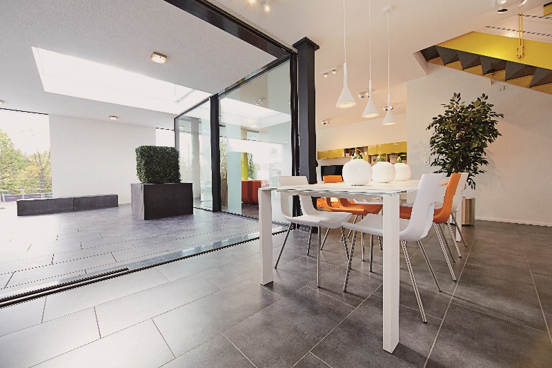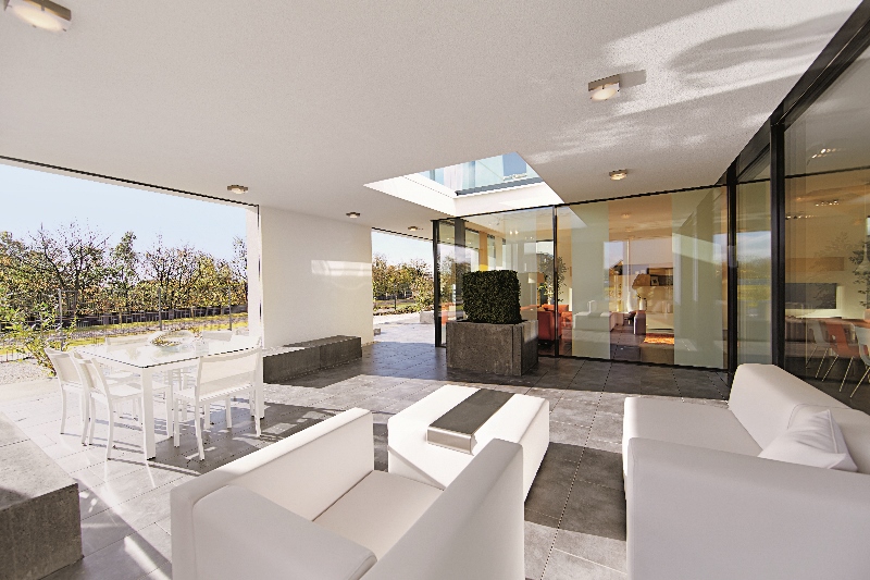 Za prozračan i svijetao osjećaj u prostorijama u prizemlju i na katu odgovorni su visoki prozori koji se u potpunosti mogu otvoriti i tako omogućiti tečan prijelaz na terasu.