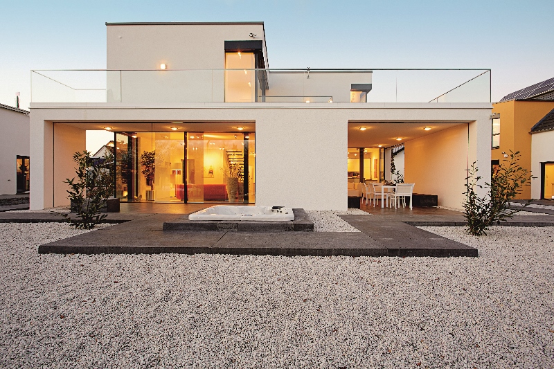 Tipska kuća tvrtke Okal Haus prostran je obiteljski domicil koji ostavlja dojam suzdržanom izuzetnošću zračeći istovremeno velikom udobnošću. Zahvaljujući promišljenom nacrtu nudi funkcionalnost potrebnu obiteljskoj svakodnevnici. Za odgovarajući tehnički komfor brine se upravljački sustav „my Gekko“ koji štedi energiju.