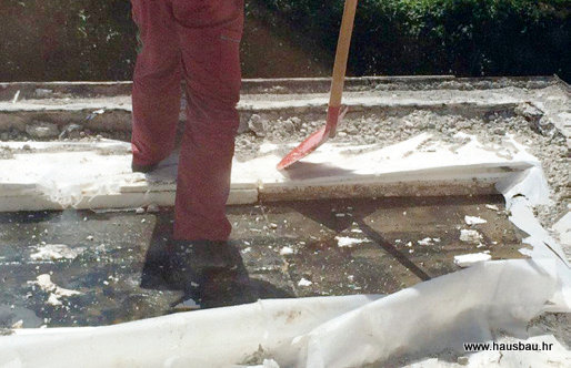 Cementni sloj je bilo puno teže razbiti i ukloniti. Toplinska izolacija ispod nje je bila prilično natopljena vodom