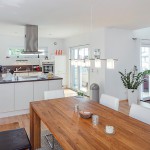Na sjevernoj strani kuće u prizemlju se nalazi radna prostorija/gostinjska soba koja je zatvorena od strane predvorja i vestibula na isti način kao kupaonica, prostorija za gospodarstvo i dnevni boravak. Sveukupno ovdje je na raspolaganju 184 kvadrata stambene površine, a objekt se zagrijava uz pomoć dizalice topline.