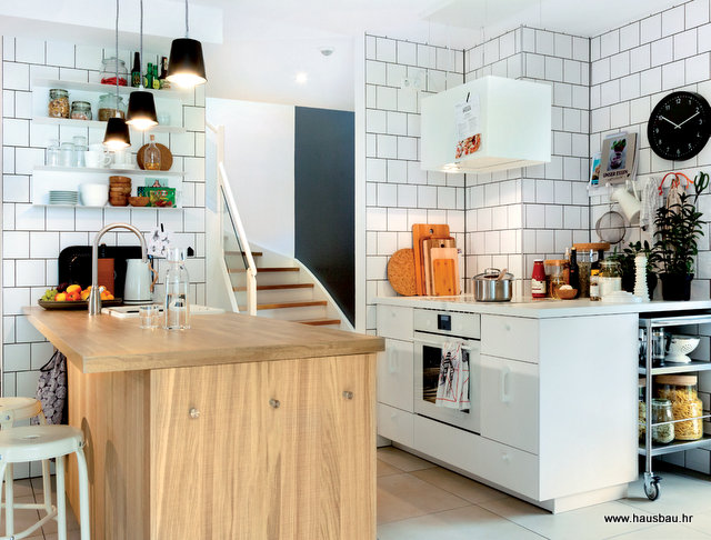 Kuhinja ima pogled na predsoblje i dnevni boravak. Dva radna otoka smještena su jedan preko puta drugog: sudoper sa stolićem za doručkovanje i centar kuhanja sa štednjakom i pećnicom – dovoljno je, jednostavno ih okrenuti.