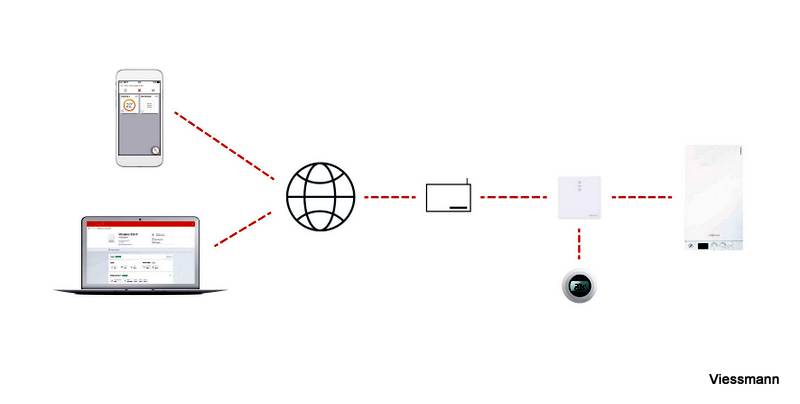 ViCare aplikacija nudi nove mogućnosti upravljanja preko interneta s Viessmann toplinskim sustavima grijanja. Sustav je koncipiran za regulaciju jednog kruga grijanja. Pomoću dodirne (Touch) funkcije odabire se željena temperatura prostora, a dodirom prsta odabire se normalni ili party način rada („Ostajem dulje kod kuće“). Kod odlaska od kuće („Na putu sam.“) dovoljna je samo jedna naredba kako bi se instalacija grijanja prebacila na sniženu temperaturu i na taj način štedila energija. Onaj tko želi programirati različita vremena uključivanja može se poslužiti s funkcijom „asistent“. Posebno polje na početnom ekranu pokazuje trenutnu vanjsku temperaturu kao i pritiskom na to polje otvara se prikaz temperatura u proteklim danima.