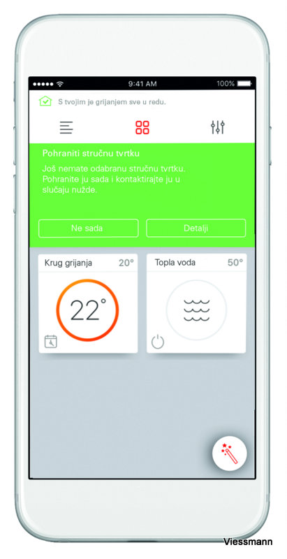 Korisnik uvijek vidi da li je u radu njegovog grijanja sve u zelenom području. Žuto polje informira o potrebnom održavanju i servisu, a crvena boja odmah prikazuje kontakt servisne tvrtke. Da bi ta funkcija bila dostupna vlasnik mora dati dopuštenje servisnoj tvrtki – to se može dodijeliti sa samo dva klika u aplikaciji. Nakon toga se uspostavlja veza sa softwareom servisne tvrtke koja onda može vidjeti podatke o instalaciji kako bi mogli klijentima dati brzu i učinkovitu podršku.