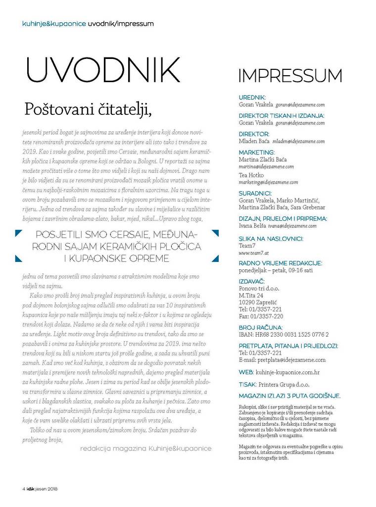 Magazin “Kuhinje&kupaonice” za svoje čitatelje donosi najnovije trendove te savjete i ideje za uređenje interijera s posebnim naglaskom