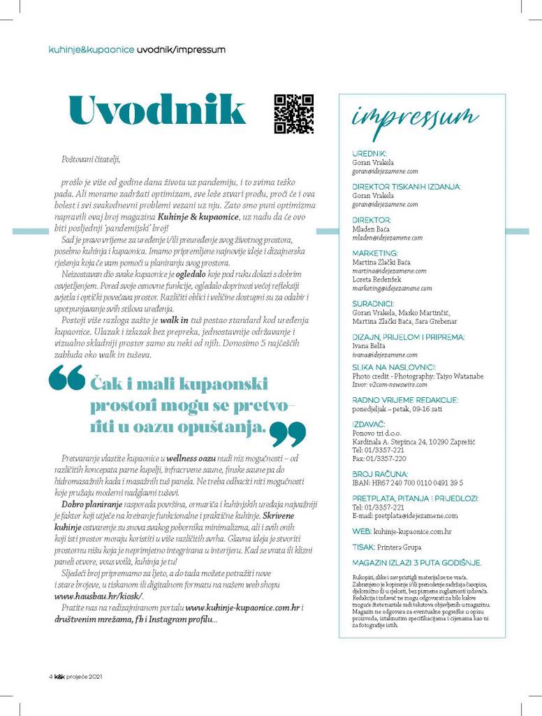 Magazin “Kuhinje&kupaonice” za svoje čitatelje donosi najnovije trendove te savjete i ideje za uređenje interijera s posebnim naglaskom