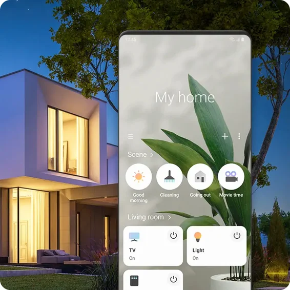 Pametno upravljanje omogućuje aplikacija SmartThings¹. Bez obzira jeste li kod kuće ili na putu, jednim dodirom na pametnom telefonu možete pratiti temperaturu, potrošnju energije ili jednostavno uključiti grijanje prije povratka kući. Sustav uči vaše navike, predviđa potrebe i automatski optimizira rad kako bi smanjio potrošnju energije – a sve to dok vi uživate u toplini.
