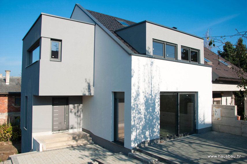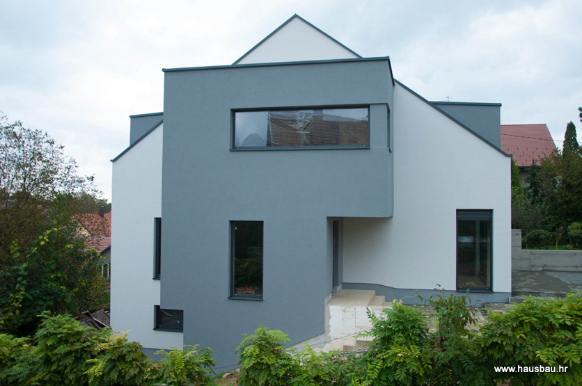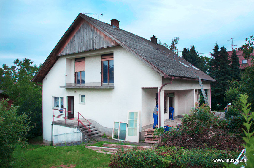 Naša želja je bila da građevina poprimi karakteristike niskoenergetske kuće, odnosno da joj specifična godišnja potrebna toplinska energija za grijanje ispod 50 kWh/(m2a) i da se klasificira u energetski razred B. Većina nosivih zidova postojeće građevine, odnosno njenog sjevernog dijela se zadržala, ali se oblikovalo potpuno novo pročelje. Na postojeća pročelja postavljao se sloj toplinske izolacije debljine 14,0 cm (isključivo fasadni sustav s grafitnim stiroporom), te akrilna žbuka. Sva stolarija zamijenila se s aluminijskom stolarijom s trostrukim izolacijskim ostakljenjem s plinovitim punjenje koeficijenta toplinske provodljivosti otvora od 1,10 W/m2K, a zaštita ostakljenja ostvarila se postavljanjem aluminijskih roleta. Konstrukcija krovišta, iako zamijenjena, ostala je drvena, ali se materijal pokrova promijenio. Unutar