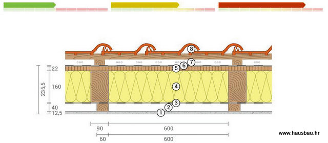 U našim primjerima izračunte U-vrijednosti (vrijednost prolaza topline) možete vidjeti da postižemo još bolje vrijednosti od konkurencija, kombinirajući gornji i donji sloj naših ploča (iznad i ispod grede) – bolje vrijednosti nego što osigurava mineralna vuna ili EPS