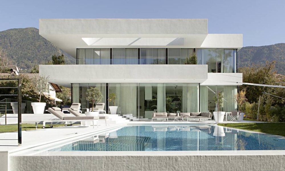 Kuća M u središtu Merana, sagrađena je u slabije naseljenom, na sjeveru Italije. Koncept dizajna bio je poigrati se sa staklenim površinama i skeletnim volumenom koji će dati upečatljiv i linearno čist vanjski izgled – unutrašnjost se u potpunosti stapa s vanjskim prostorom uz neprimjetni prijelaz zbog čega se cijeli koncept djeluje fluidno zajedno s vanjskim bazenom.