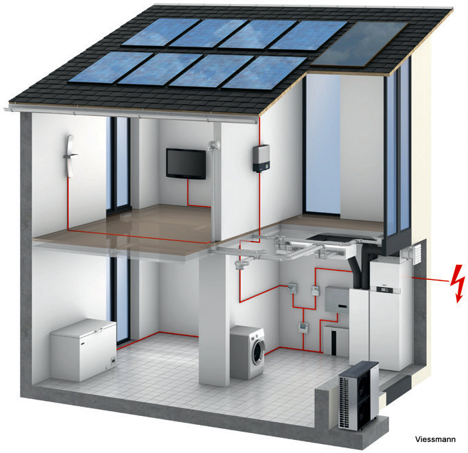 Vlasnici kuća s fotonaponskim sustavom na svom krovu mogu dva puta profitirati od „aktivnog hlađenja“: tijekom sezone grijanja mogu se koristiti dizalicama topline za grijanje po niskim troškovima i na CO2 neutralan način, a ljeti veliku solarnu opskrbu električnom energijom mogu koristiti za hlađenje zgrada na posebno ekonomičan način. Ako fotonaponu na krovu dodamo i termički solarni sustav Viessmann onda se ljeti i u prijelaznim periodima može bezbrižno uživati u ekološki i učinkovito pripremljenoj toploj vodi za kupanje, tuširanje i korištenje u kućanstvu te na taj način rasteretiti dizalicu topline koja onda služi samo za hlađenje objekta. Tek u trenutcima kada solar ne može u potpunosti pokriti potrebe za toplom vodom dizalica topline se prebacuje u način zagrijavanja tople vode.